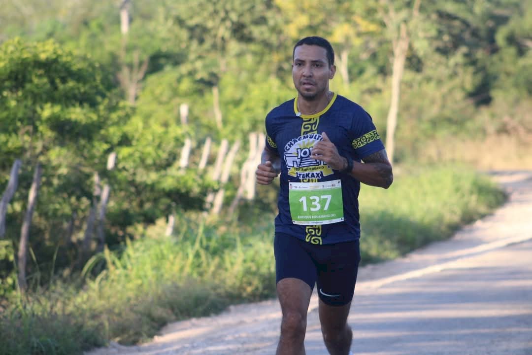 Enrique Rodríguez García de Campeche fue el ganador del primer lugar en los 10 kilómetros de la carrera Chacmultún-Tekax que se realizó este domingo con unos 800 corredores que tomaron la salida en la zona arqueológica dada por Armin Lizama Córdova, director del Instituto del Deporte de Yucatán y Hervé Vallejos Sansores, presidente municipal de Tekax, que conmemoraron con esto, el 183 Aniversario de la Ciudad.